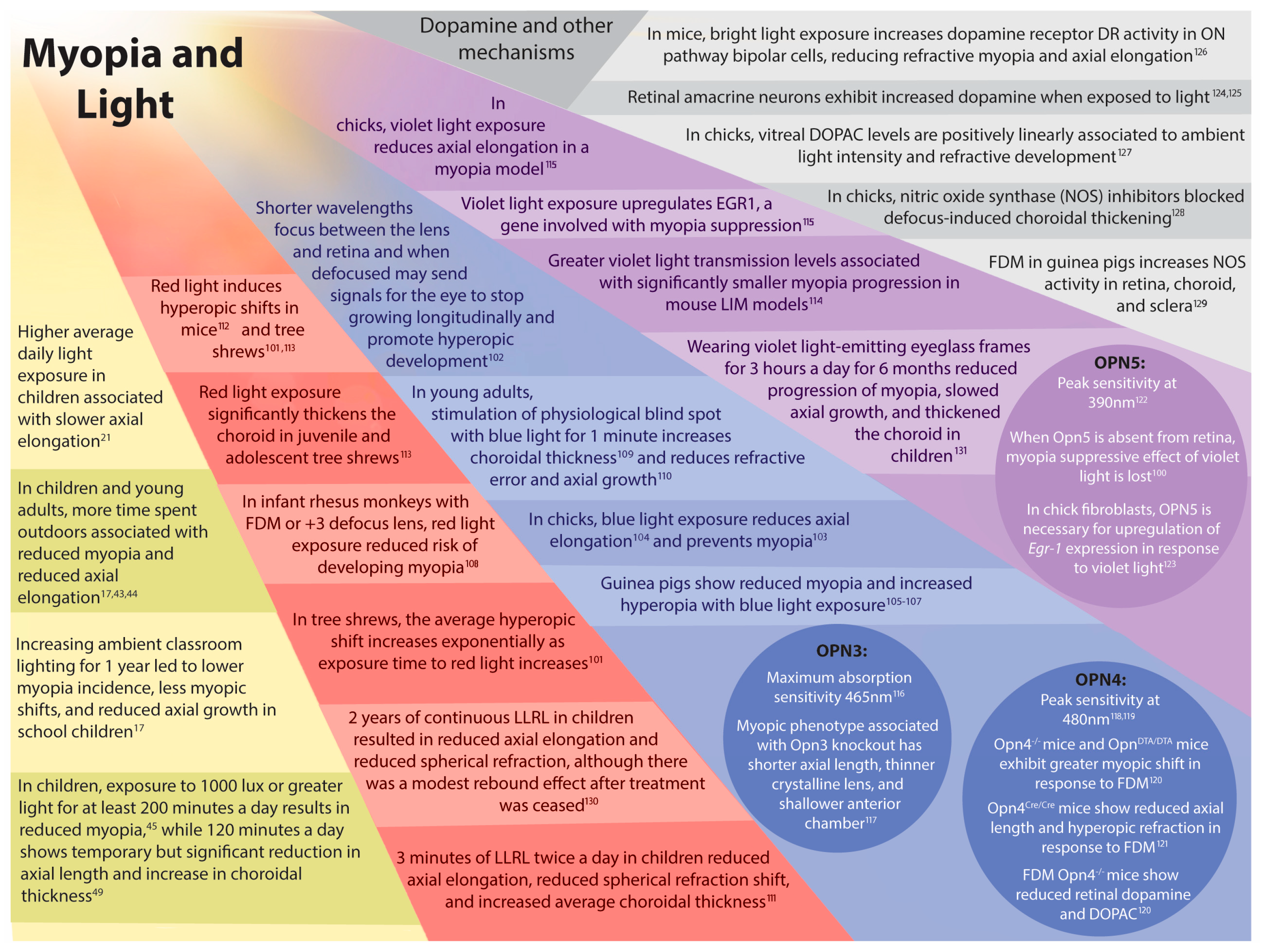 - While there is still much to be explored, recent findings have suggested several potential mechanisms through which light influences myopia development.