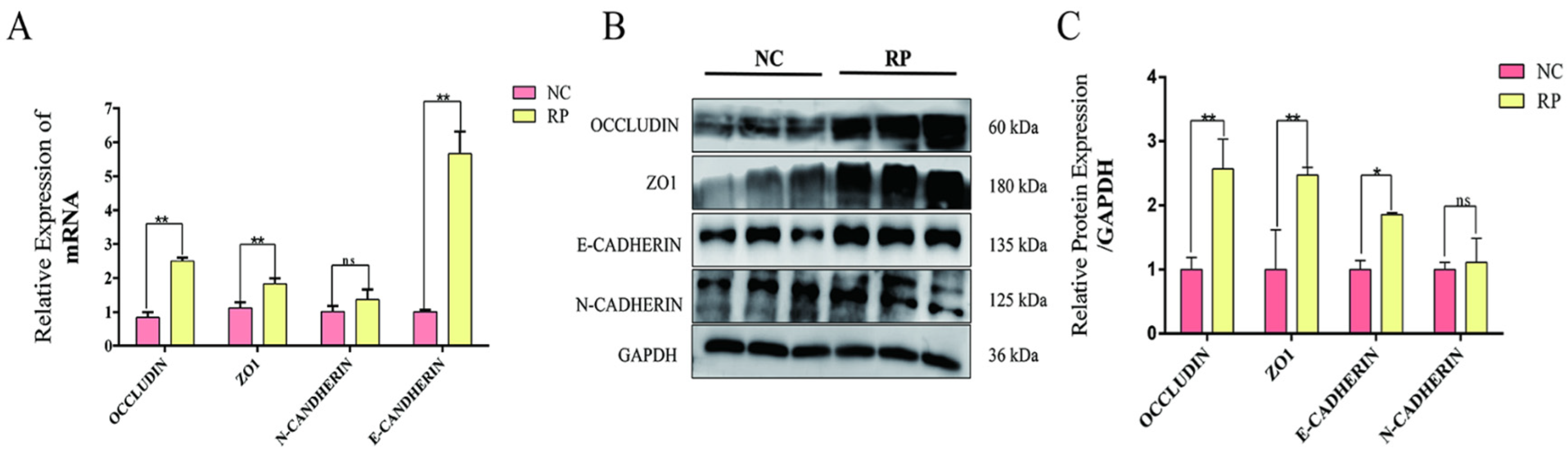3.4. Altered Expression of Tight Junction and EMT-Associated Markers in RP Fetal Cotyledonary Tissues
