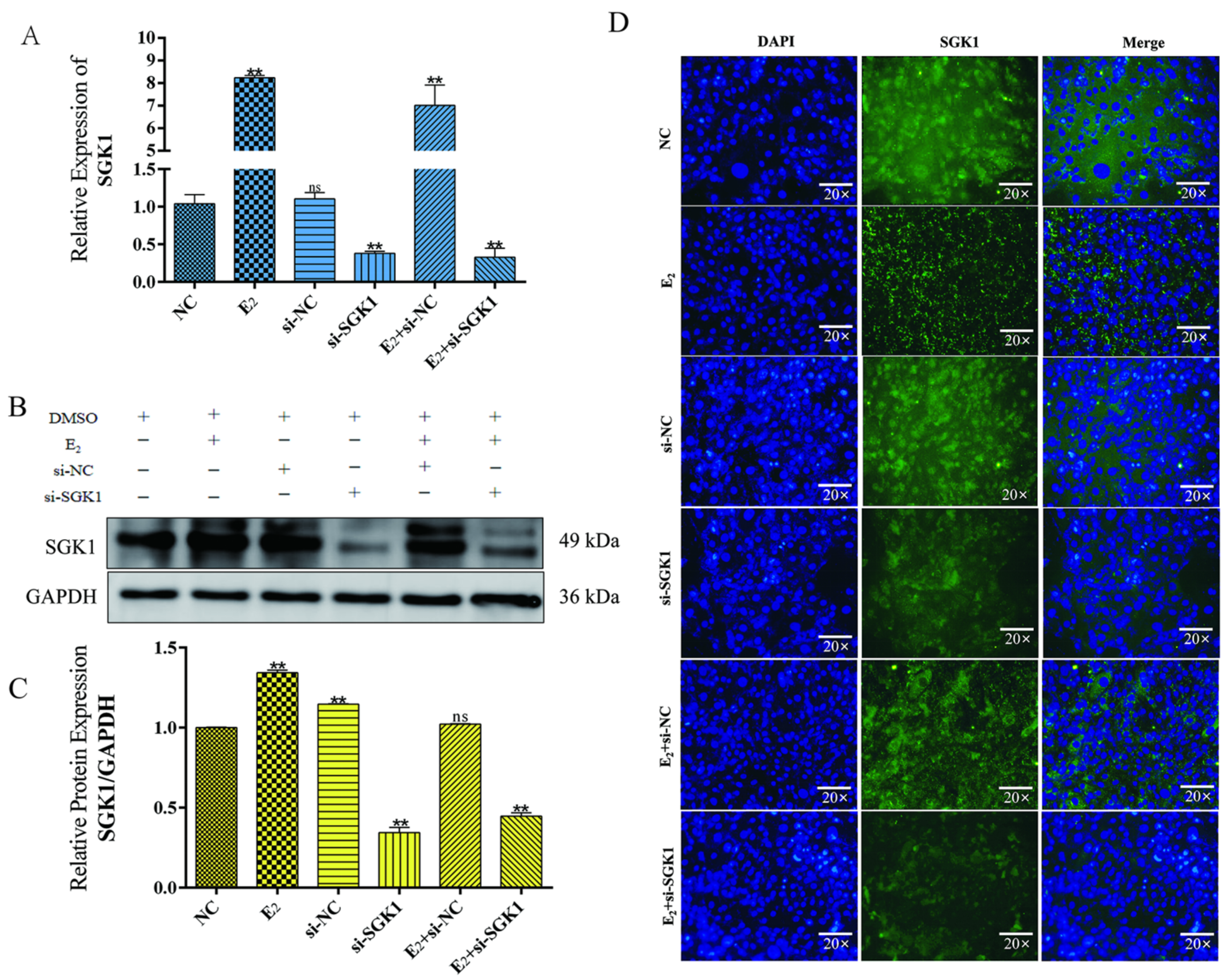 3.6. E2 Upregulates SGK1 Expression in BEND Cells