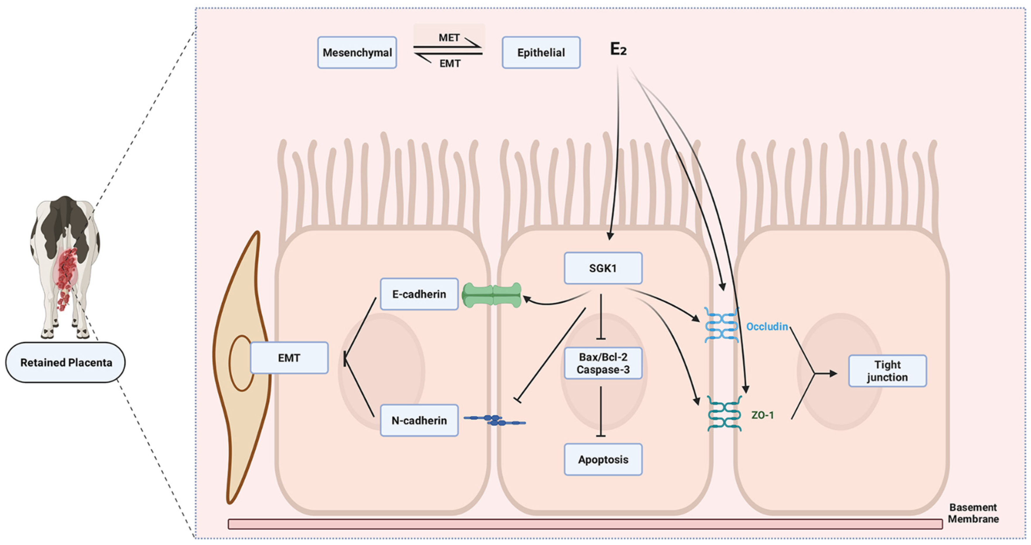 - SGK1 is upregulated in retained placenta of dairy cows and correlates with suppressed apoptosis, increased tight junction proteins, and enhanced epithelial marker expression.