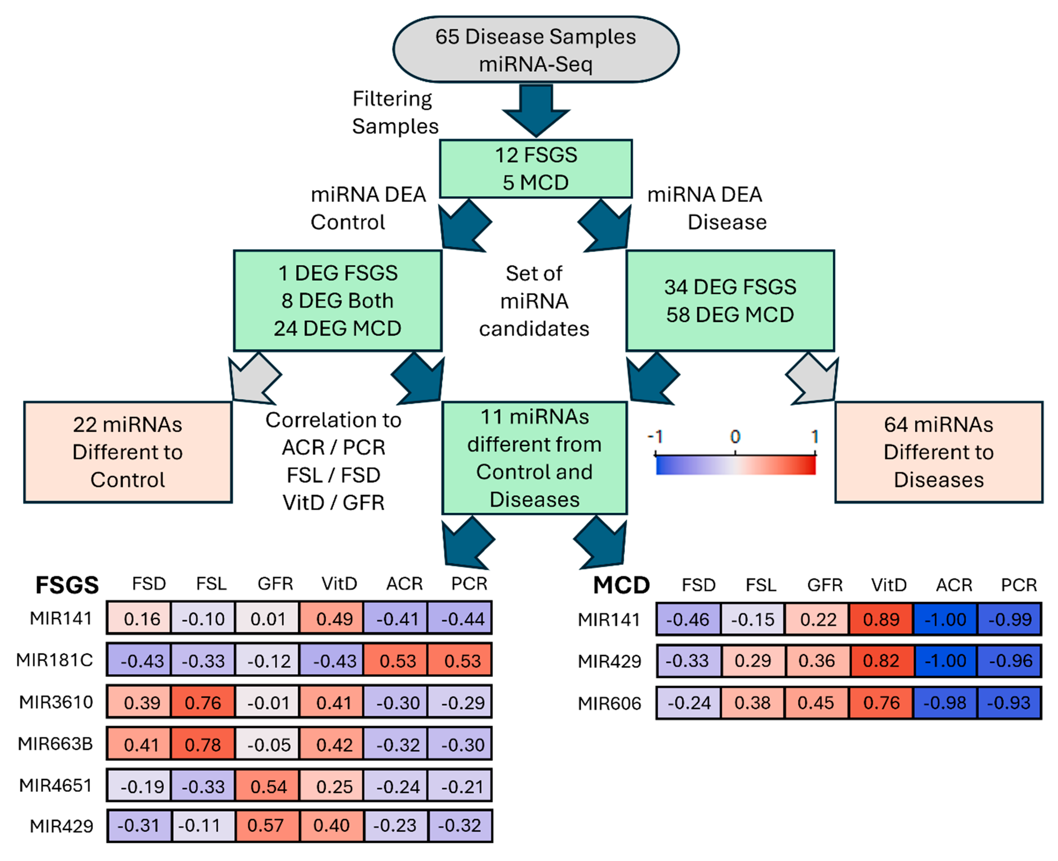 3.6. Regression Analysis Suggests miRNA Candidates as Targets for MCD and FSGS