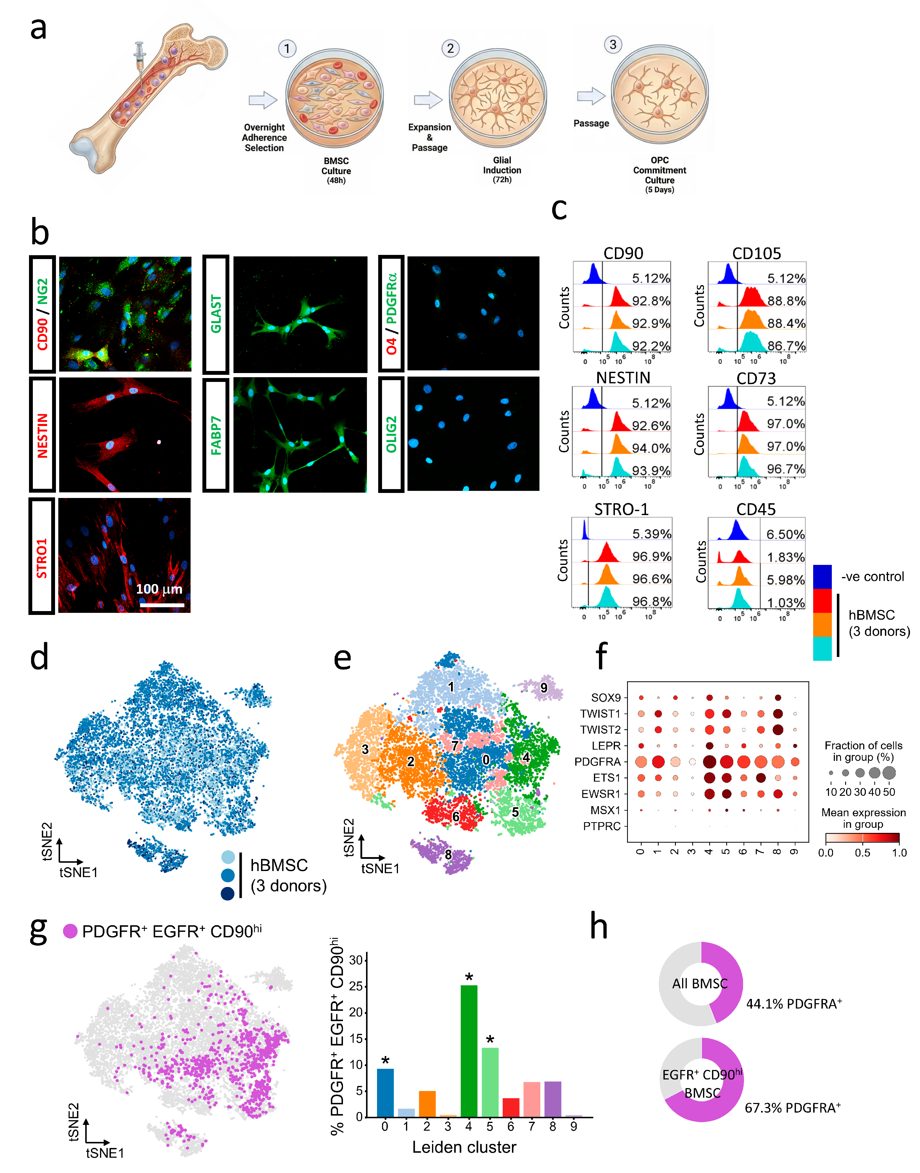 - A proliferative population of cells expressing pre-oligodendrocyte precursor cell (CD90hiEGFR+PDGFRA+ pre-OPC) markers was identified in human bone marrow stromal cells (hBMSCs).