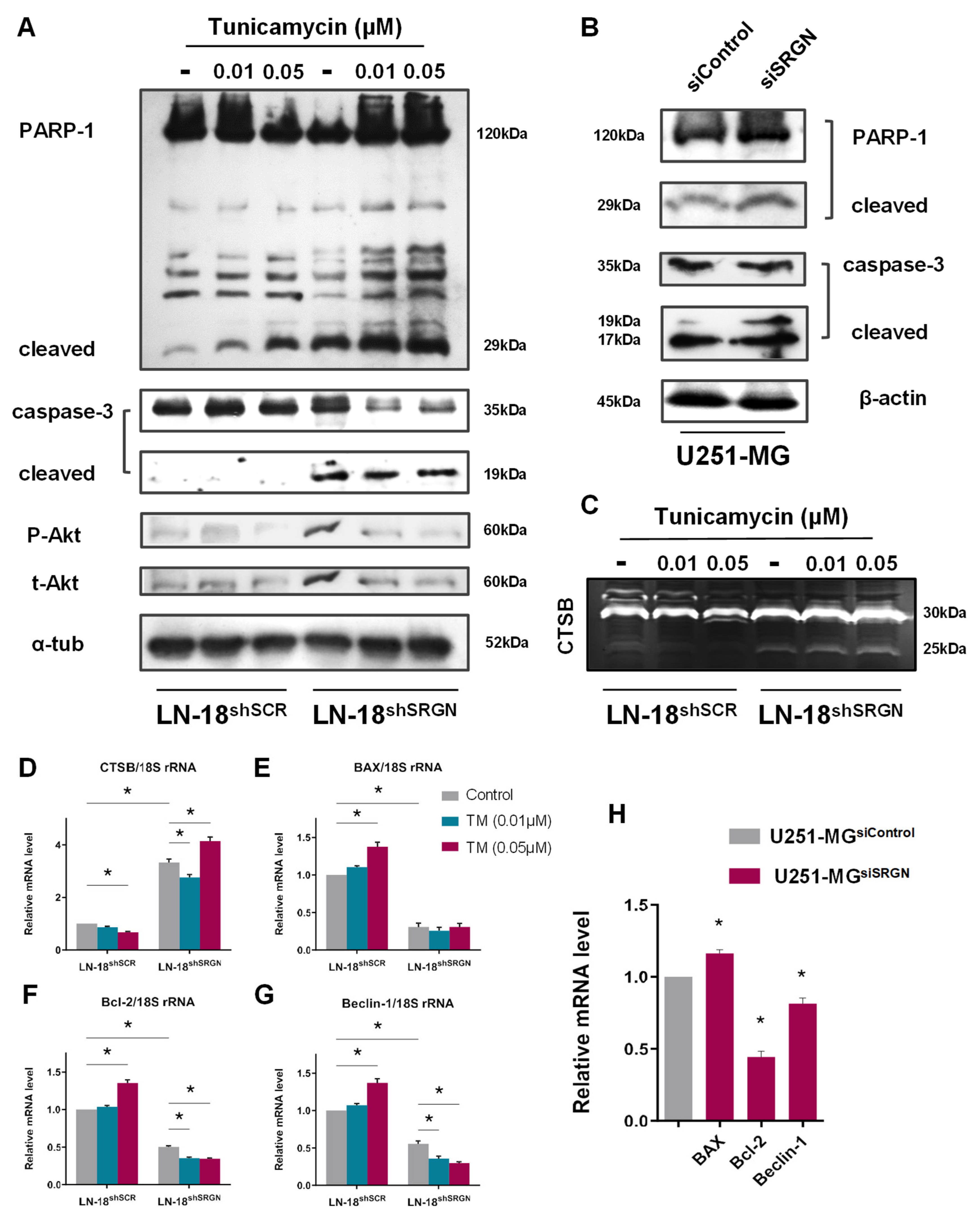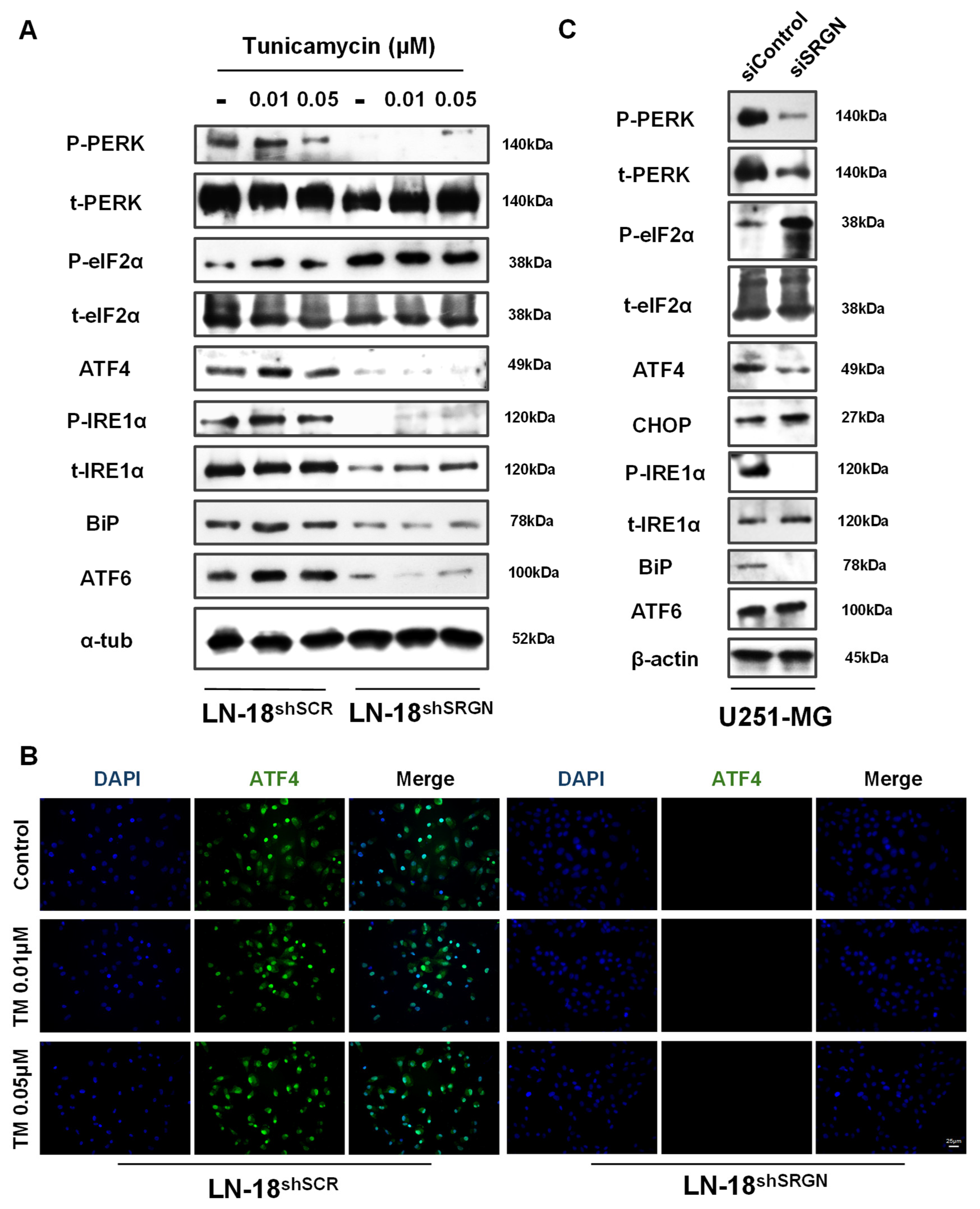3.1. SRGN Suppression Abolishes UPR Markers’ Expression in GBM Cells, and Affects the Response to TM-Induced ER Stress
