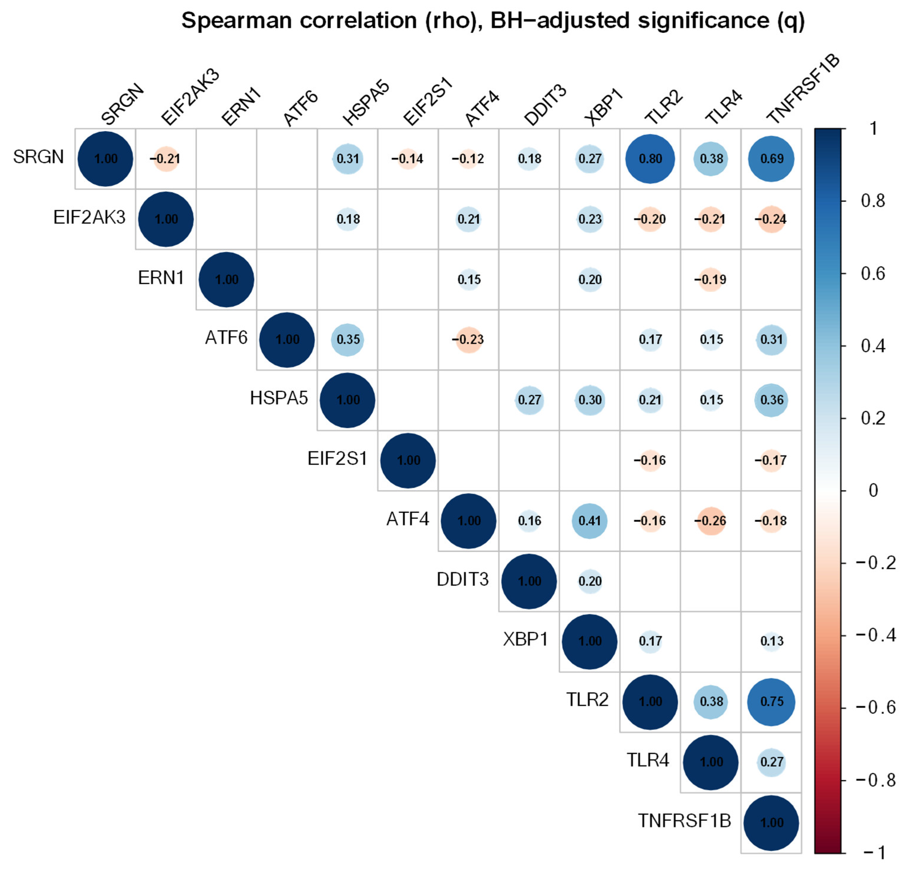 3.6. SRGN Correlated with a Coordinated UPR-Inflammation Transcriptional Program