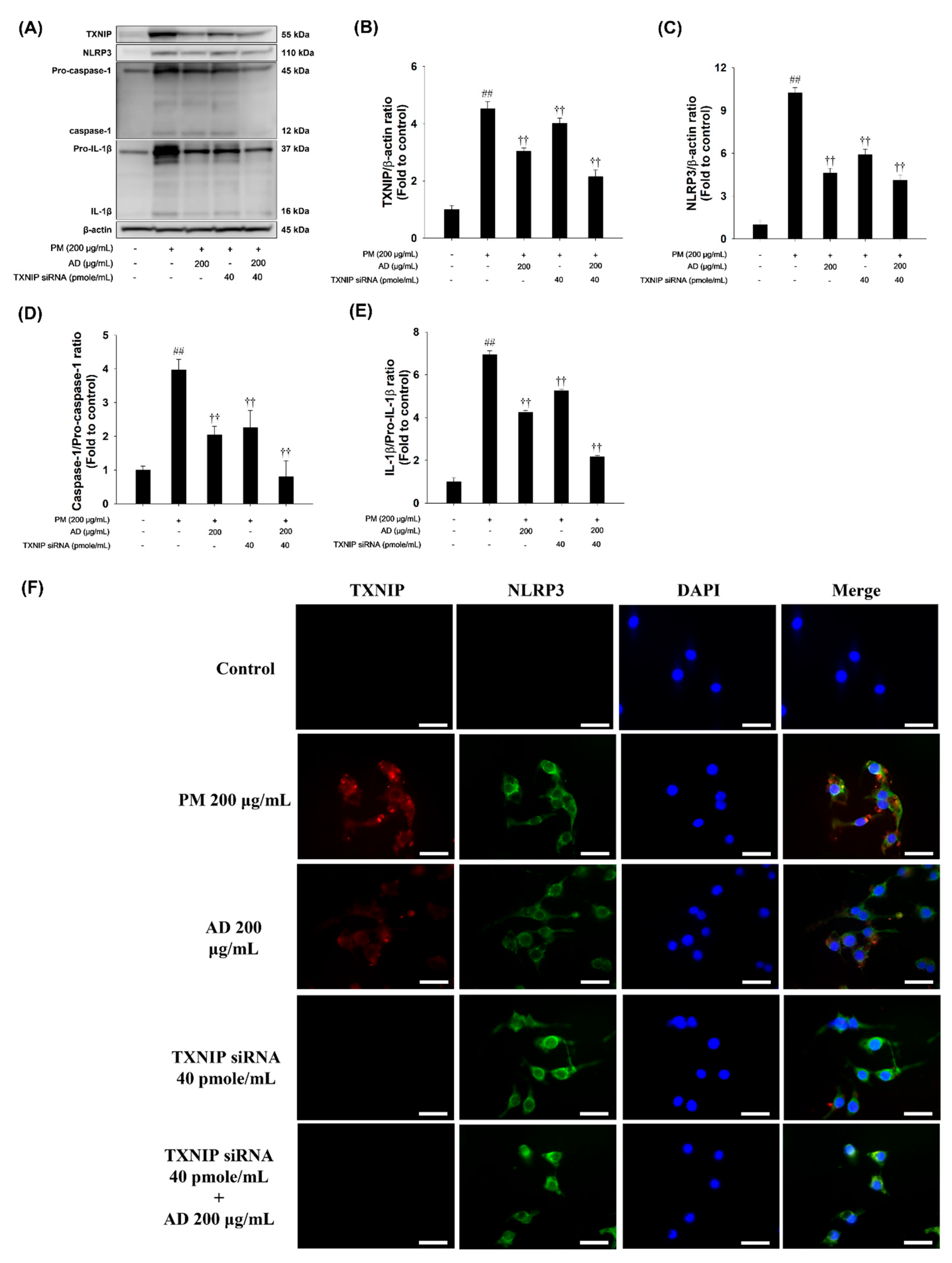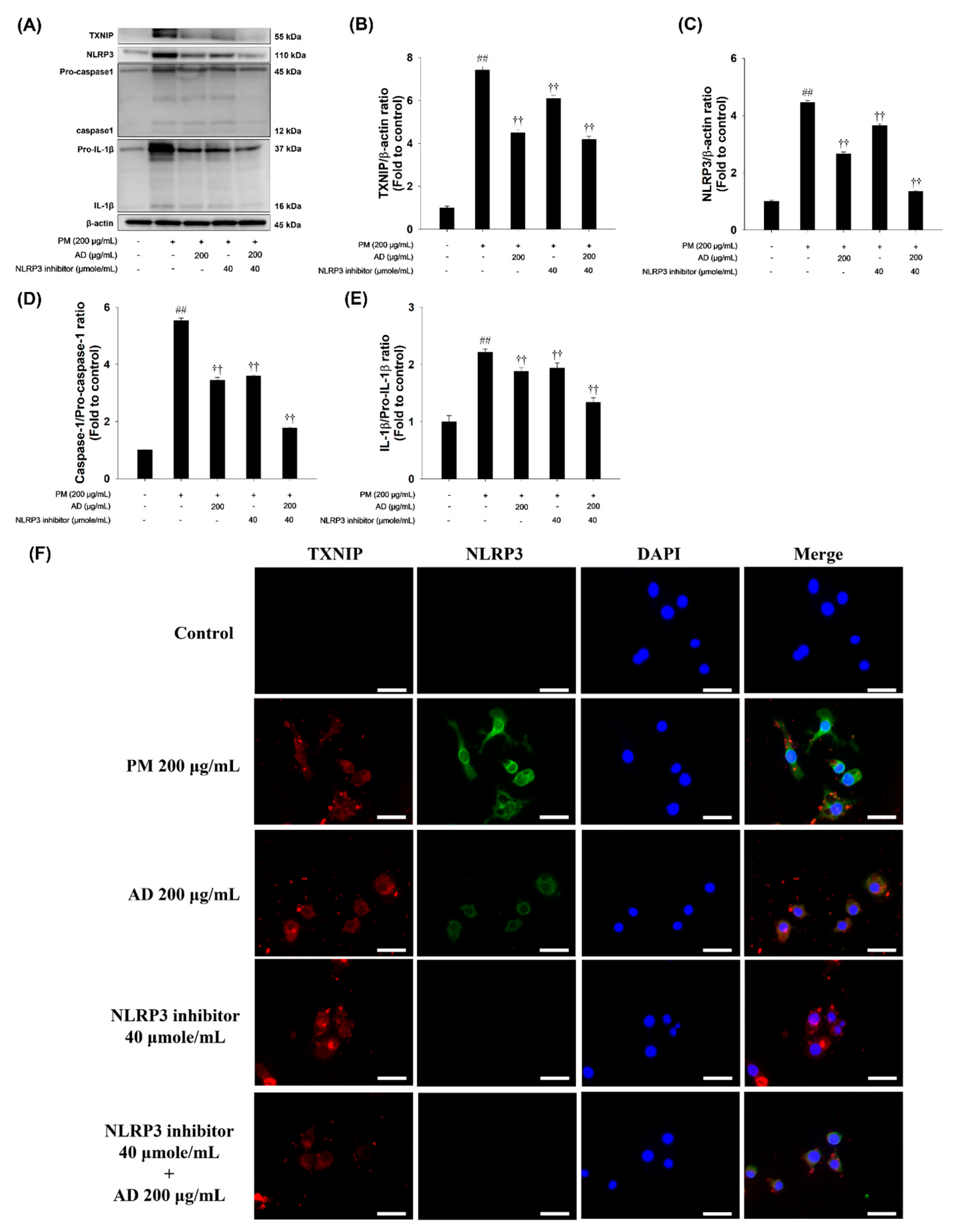 - This study investigates the anti-inflammatory potential of Adenophora divaricata Franch. & Sav. (AD) and its regulatory effects on TXNIP/NLRP3 inflammasome signaling in PM-stimulated in RAW264.7 cell and PM-induced lung inflammation mice.