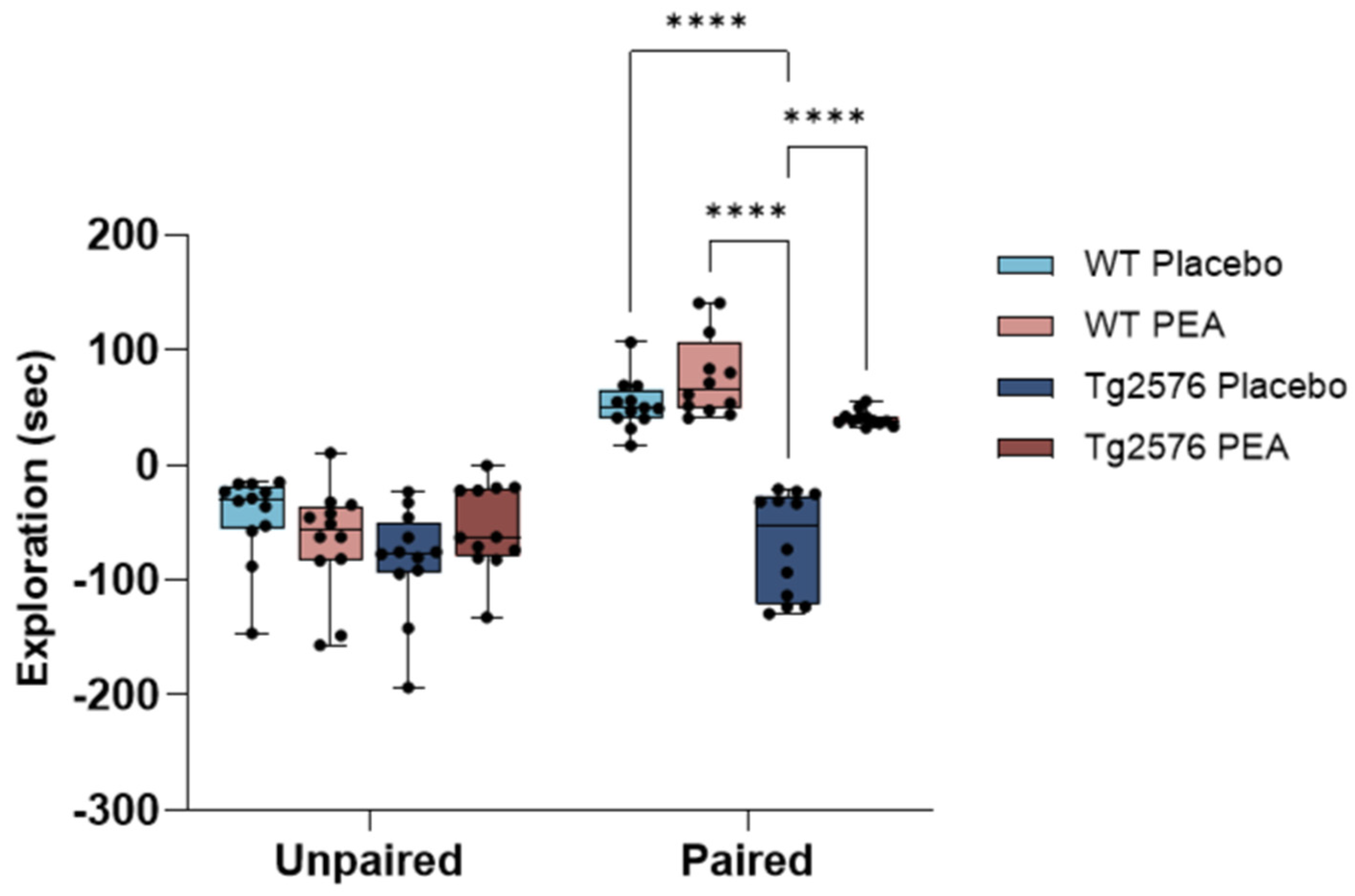 - Chronic infusion of palmitoylethanolamide (PEA) restores motivation-driven behavior in Tg2576 mice, assessed by the conditioned place preference paradigm.