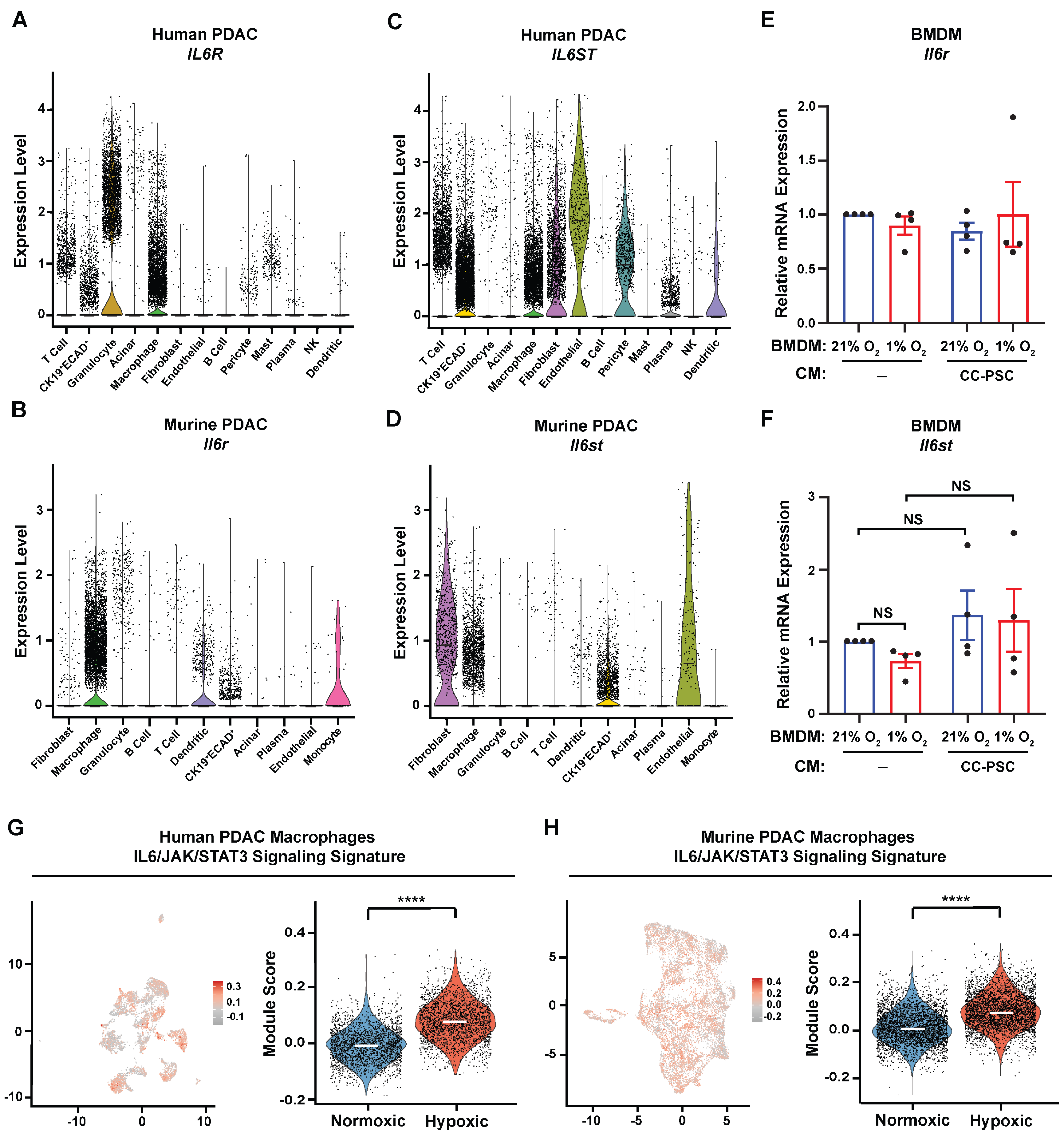 3.4. IL6/JAK/STAT3 Signaling Signature Is Enriched in Hypoxic TAMs in PDAC