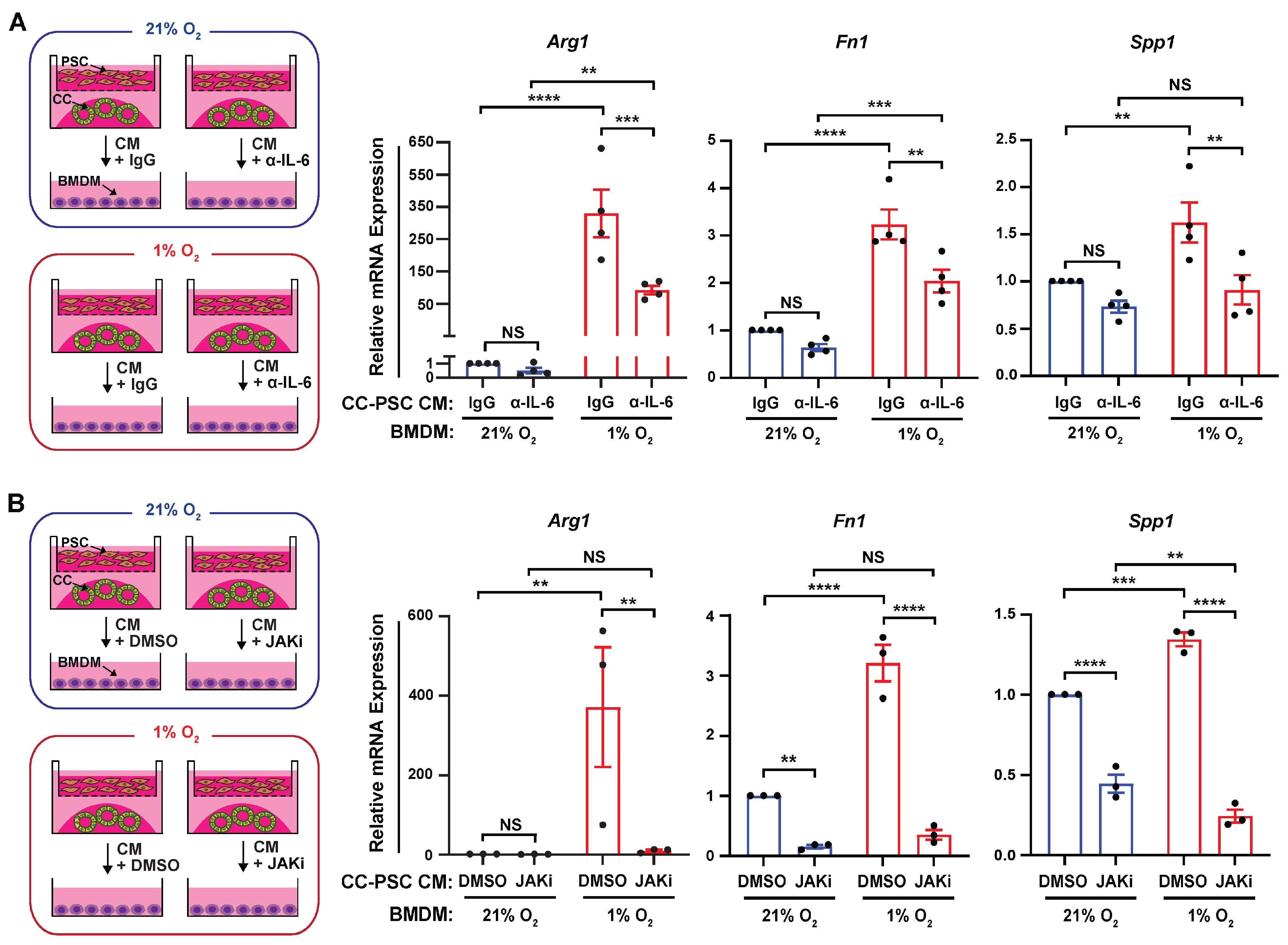 3.5. Fibroblast-Derived IL-6 Mediates Hypoxia-Induced Immunosuppressive Macrophage Phenotype via JAK/STAT Signaling