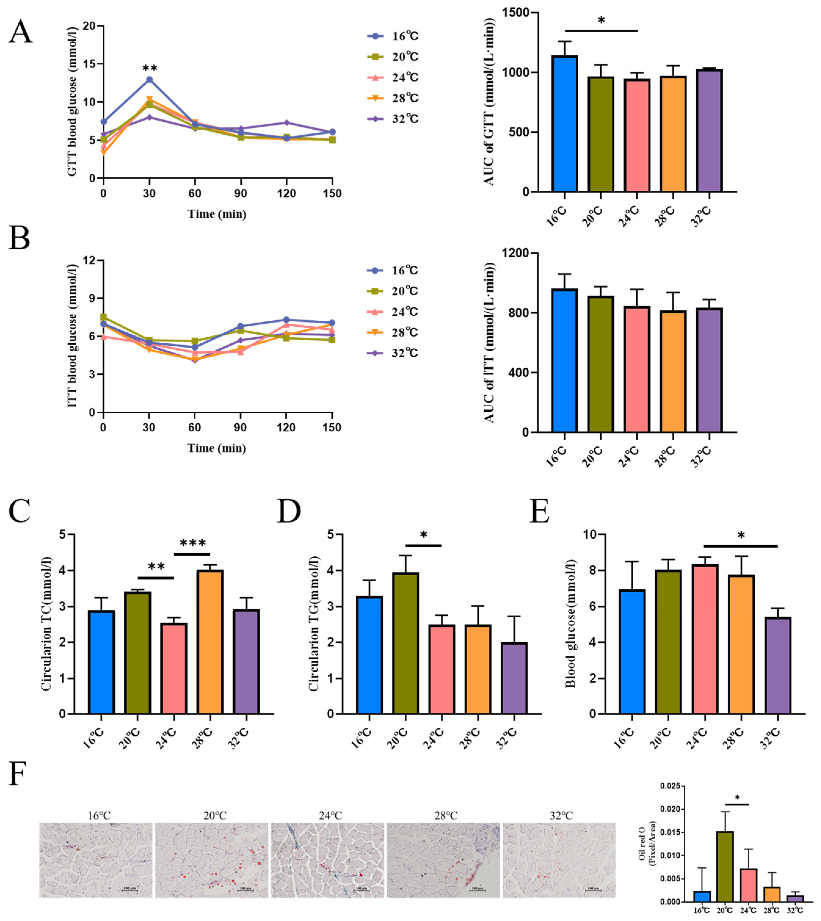 3.1. Ambient Temperature Modulates Systemic Metabolism and Growth Trajectories