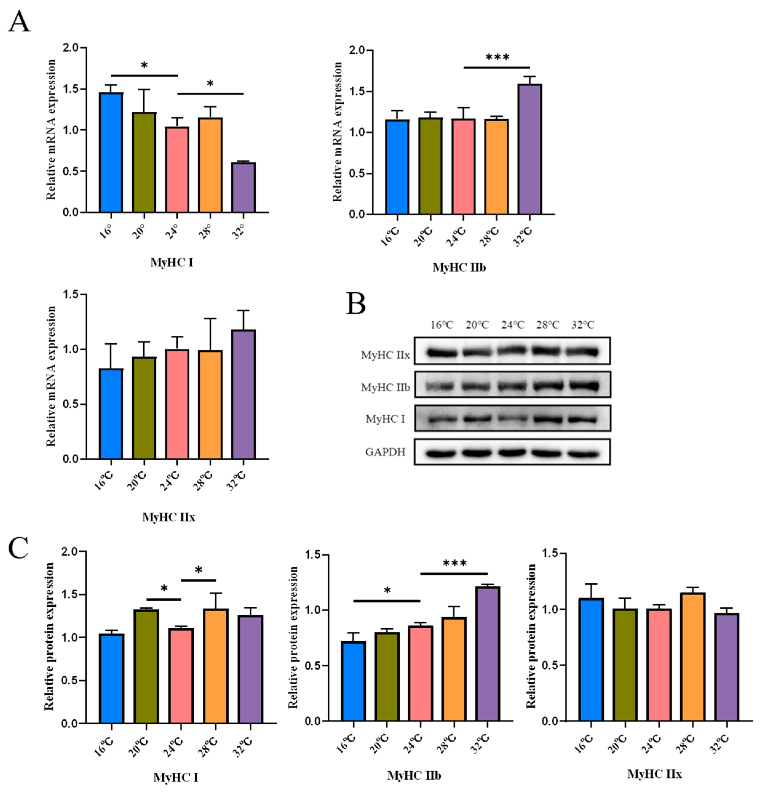 - Temperature-dependent MyHC responses are non-linear and vary across conditions.