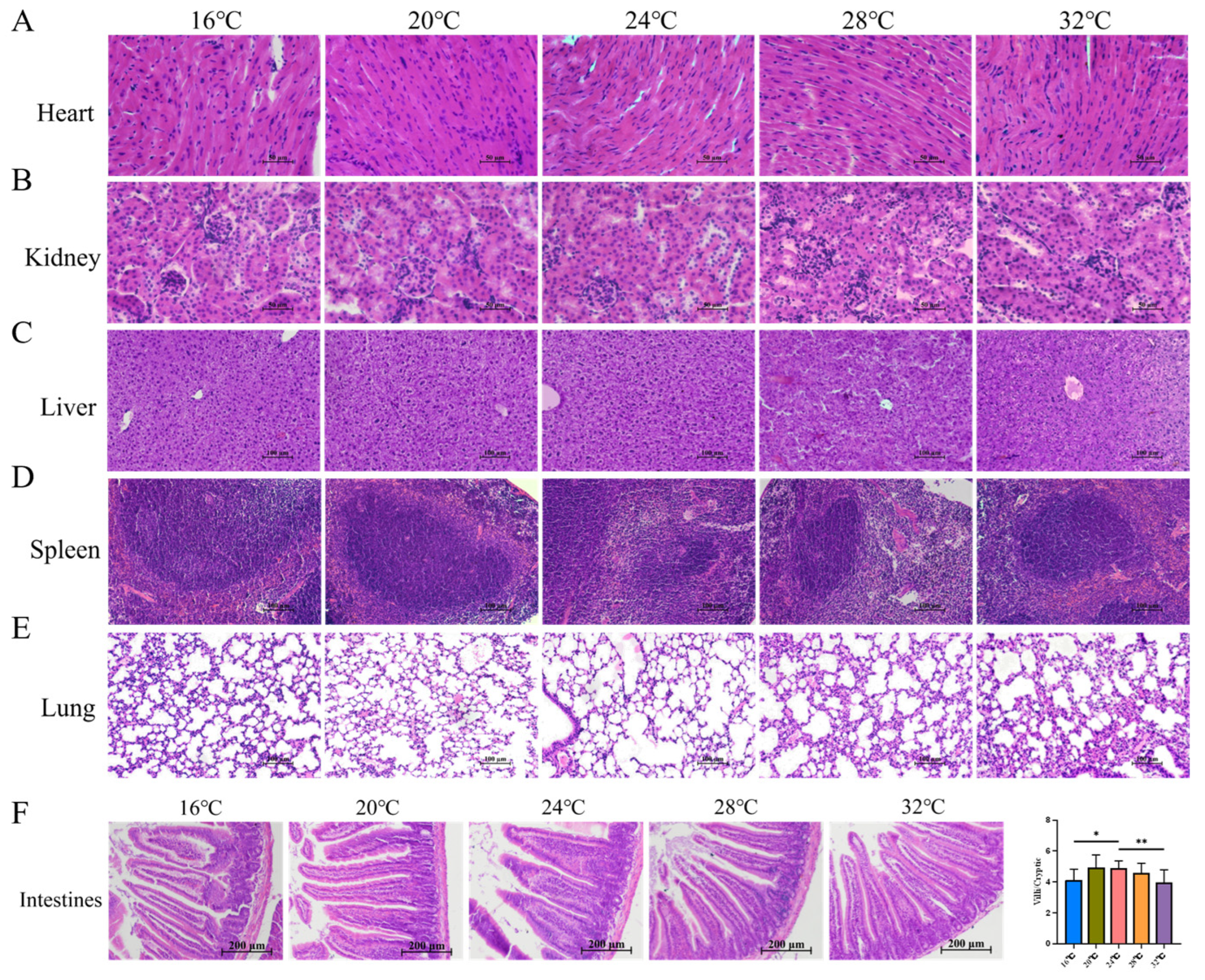 3.5. Thermal Extremes Compromise Intestinal Morphology Despite Stable Organ Indices