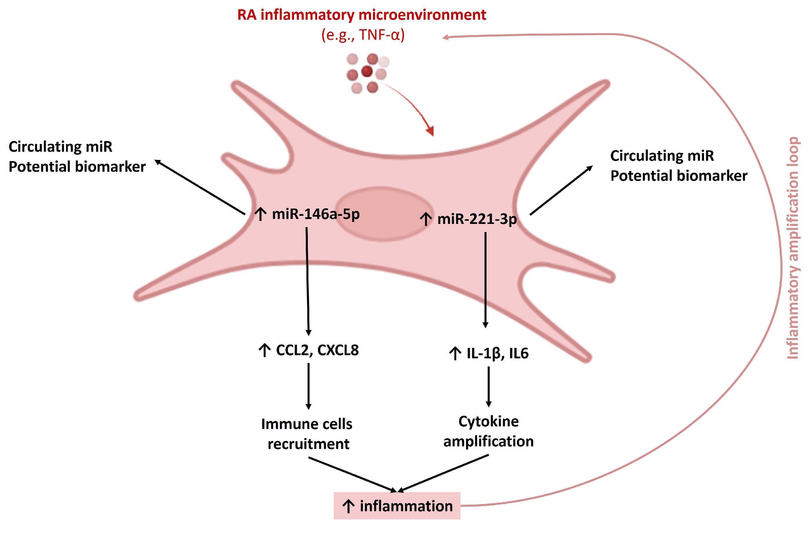 - Targeting miR-146a-5p and miR-221-3p may represent a novel therapeutic strategy to modulate inflammatory processes in rheumatoid arthritis.