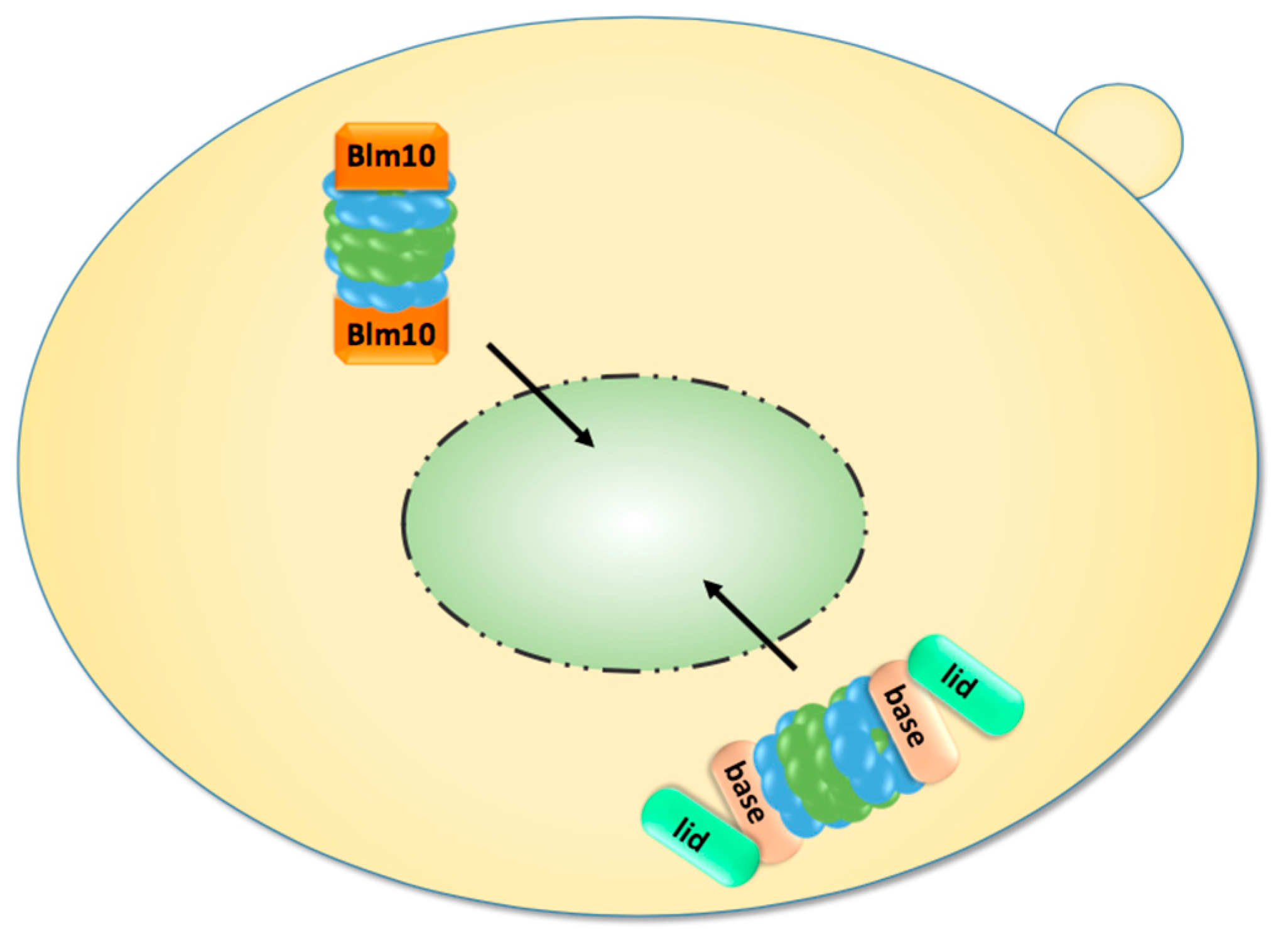 - Weberruss, M.H.; Savulescu, A.F.; Jando, J.; Bissinger, T.; Harel, A.; Glickman, M.H.; Enenkel, C. Blm10 facilitates nuclear import of proteasome core particles. EMBO J. 2013, 32, 2697–2707. [Google Scholar] [CrossRef] [PubMed]