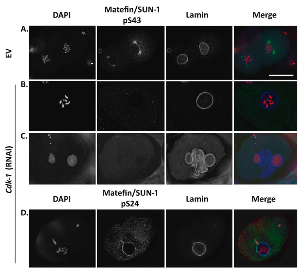3.1.2. Phosphorylation of Serine 43 in Matefin/SUN-1 Requires CDK-1 Activity