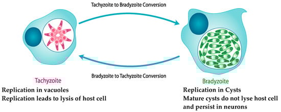 - White, M.W.; Radke, J.R.; Radke, J.B. Toxoplasma development—Turn the switch on or off? Cell. Microbiol. 2014, 16, 466–472. [Google Scholar] [CrossRef] [PubMed]
