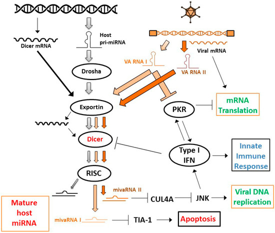 - Lu, S.; Cullen, B.R. Adenovirus VA1 noncoding RNA can inhibit small interfering RNA and MicroRNA biogenesis. J. Virol. 2004, 78, 12868–12876. [Google Scholar] [CrossRef] [PubMed]