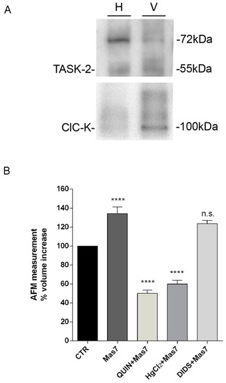 - Barriere, H.; Belfodil, R.; Rubera, I.; Tauc, M.; Lesage, F.; Poujeol, C.; Guy, N.; Barhanin, J.; Poujeol, P. Role of task2 potassium channels regarding volume regulation in primary cultures of mouse proximal tubules. J. Gen. Physiol. 2003, 122, 177–190. [Google Scholar] [CrossRef] [PubMed]