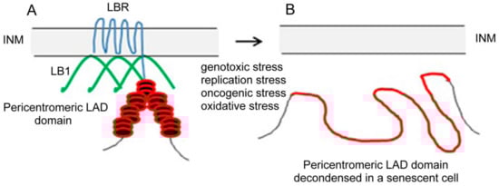 - Swanson, E.C.; Manning, B.; Zhang, H.; Lawrence, J.B. Higher-order unfolding of satellite heterochromatin is a consistent and early event in cell senescence. J. Cell Biol. 2013, 203, 929–942. [Google Scholar] [CrossRef] [PubMed]