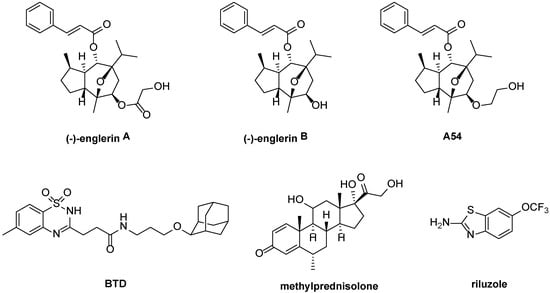 - Richter, J.M.; Schaefer, M.; Hill, K. Riluzole activates TRPC5 channels independently of PLC activity. Br. J. Pharmacol. 2014, 171, 158–170. [Google Scholar] [CrossRef] [PubMed]
