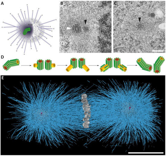 - Guichard, P.; Desfosses, A.; Maheshwari, A.; Hachet, V.; Dietrich, C.; Brune, A.; Ishikawa, T.; Sachse, C.; Gonczy, P. Cartwheel architecture of Trichonympha basal body. Science 2012, 337, 553. [Google Scholar] [CrossRef] [PubMed]