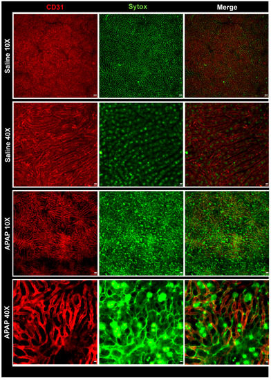 3.1. APAP Overdose Causes Massive DNA Accumulation within Necrotic Areas and Liver Sinusoids