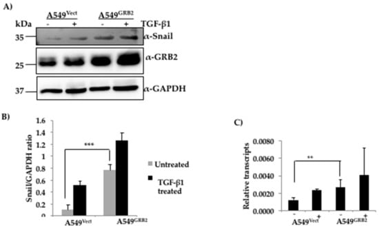 3.6. The Expression of SNAIL Is Increased in GRB2-Overexpressing A549 Cells