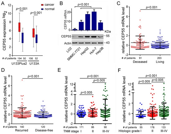 3.1. CEP55 Expression Is Upregulated in HCC Tissues and Cell Lines