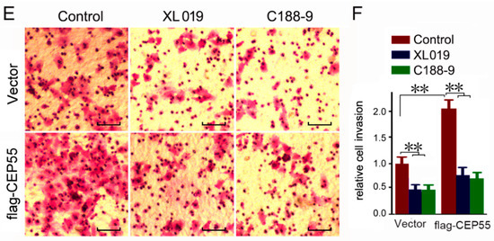 - Wang, Y.; Jin, T.; Dai, X.; Xu, J. Lentivirus-mediated knockdown of CEP55 suppresses cell proliferation of breast cancer cells. Biosci. Trends 2016, 10, 67–73. [Google Scholar] [CrossRef] [PubMed]