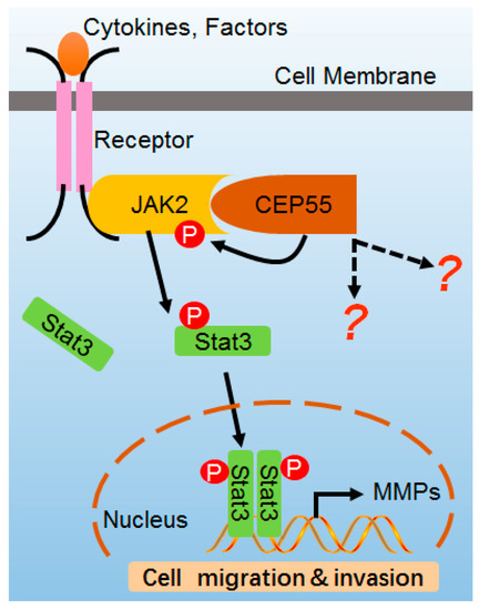 Chicago/Turabian StyleLi, Minjing, Ju Gao, Defang Li, and Yancun Yin. 2018. "CEP55 Promotes Cell Motility via JAK2–STAT3–MMPs Cascade in Hepatocellular Carcinoma" Cells 7, no. 8: 99. https://doi.org/10.3390/cells7080099