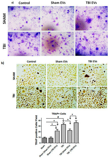 3.6. EVs Derived from TBI Bone Marrow Enhance Osteoclast Differentiation of Bone Marrow Cells