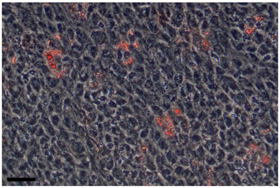 Unlike osteogenic differentiation, the propensity of liver MSCs for adipogenic differentiation in vitro is somewhat questionable. Some studies show that under standard adipogenic conditions [3] liver MSCs differentiate into adipocytes and accumulate lipid vacuoles [22,28,92], while other works deny this fact [20,21,72]. In our work, we demonstrated that in a population of liver MSCs isolated from the liver of patients with alcoholic cirrhosis, a proportion of cells are able to accumulate lipid droplets 3 weeks after the induction of adipogenic differentiation in a growth medium supplemented with insulin, IBMX (3-isobutyl-1-methylxanthine), dexamethasone, and indomethacin [93] (Figure 2).