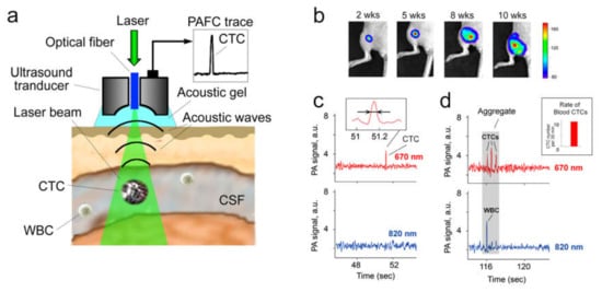 - Galanzha, E.I.; Zharov, V.P. Circulating tumor cell detection and capture by photoacoustic flow cytometry in vivo and ex vivo. Cancers 2013, 5, 1691–1738. [Google Scholar] [CrossRef]