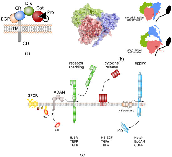 - Takeda, S. Three-dimensional domain architecture of the ADAM family proteinases. Sem. Cell Dev. Biol. 2009, 20, 146–152. [Google Scholar] [CrossRef] [PubMed]