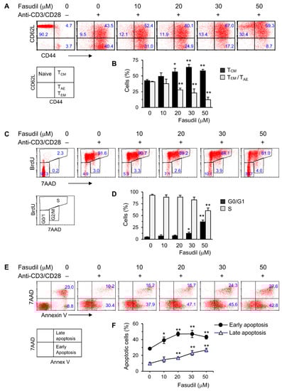 3.2. Fasudil Inhibits Activation and Proliferation of CD4+ T Cells