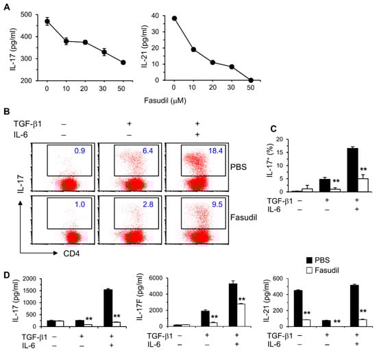 3.3. Fasudil Impairs Th17 Differentiation and Cytokine Secretion In Vitro