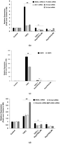 3.5. Oxy210 Inhibits TGFβ-Induced Invasive Activity of A549 Cells
