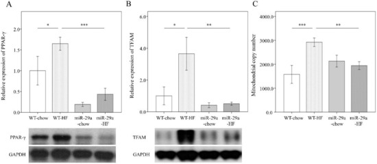 3.4. Overexpression of miR-29a Modulates HFD-Caused Perturbation of Mitochondrial Biogenesis in the Liver