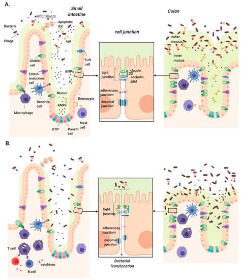 2.2. Physical and Chemical Barriers of the Intestinal Mucosa