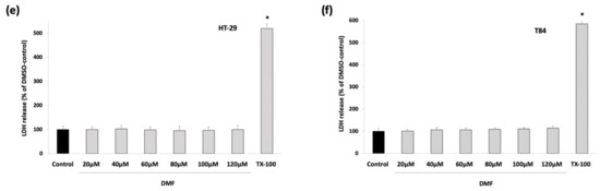 These results were not conveyed through cytotoxic effects because DMF did not significantly increase LDH (Figure 2e,f).