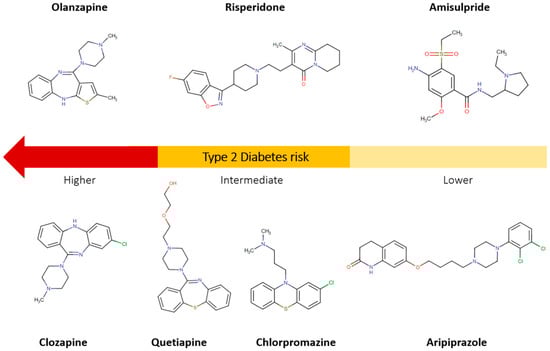 - Vancampfort, D.; Correll, C.U.; Galling, B.; Probst, M.; De Hert, M.; Ward, P.B.; Rosenbaum, S.; Gaughran, F.; Lally, J.; Stubbs, B. Diabetes mellitus in people with schizophrenia, bipolar disorder and major depressive disorder: A systematic review and large scale meta-analysis. World Psychiatry 2016, 15, 166–174. [Google Scholar] [CrossRef]