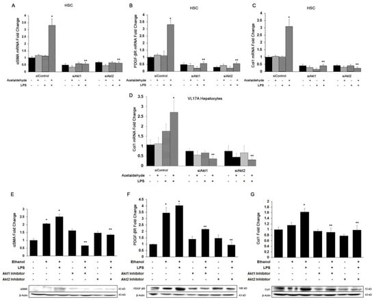 3.3. Both Akt1 and Akt2 Are Involved in Ethanol and LPS Induced Fibrosis