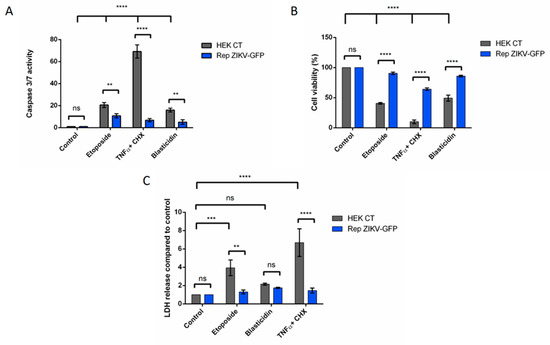 3.3.2. A549 Cells Transiently Expressing a ZIKV Replicon are Protected from Different Intrinsically Induced Apoptosis