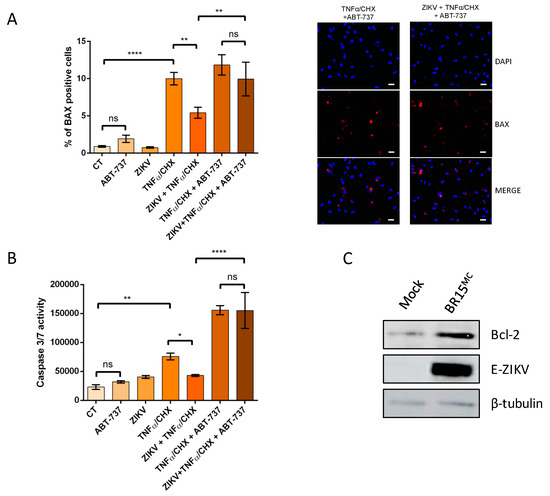 3.4. ZIKV Promotes an Anti-Apoptotic Prevailing Status in Infected Cells Through the Bcl-2 Family Protein