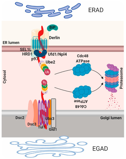 - Fonseca, D.; Carvalho, P. EGAD! There is an ERAD doppelganger in the Golgi. EMBO J. 2019, 1–3. [Google Scholar] [CrossRef]