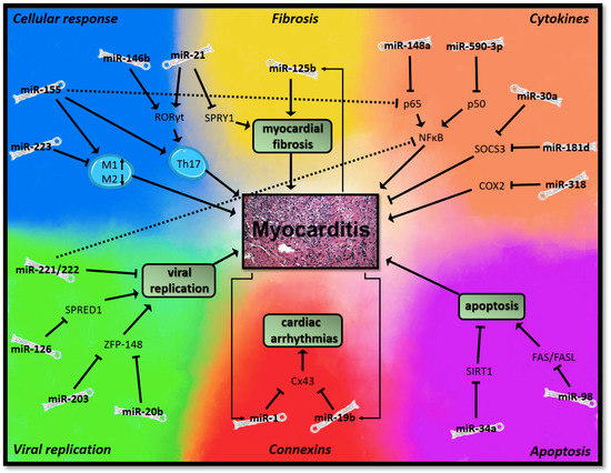 Several studies have investigated the role of miRNAs in the expression of cytokines by targeting transcription factors or enzymes in the setting of myocarditis. This subsection can only portray a selection of the manifold scientific papers that have been published on this matter [27,28].