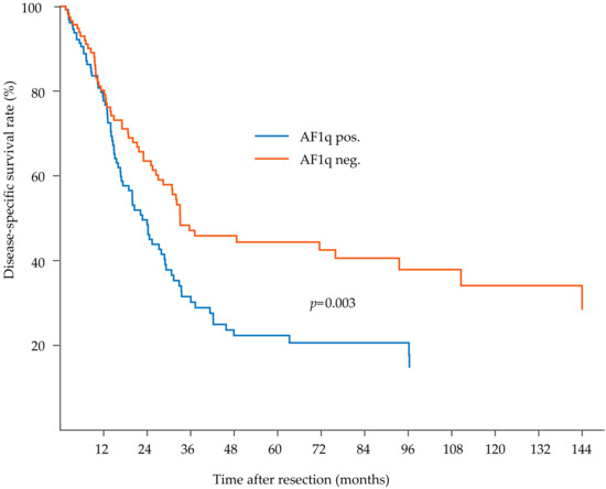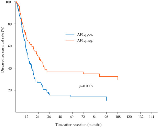 | AF1q positive, n = 19 (59.4) | 14 (43.8) | 5 (15.6) | 0.016 |