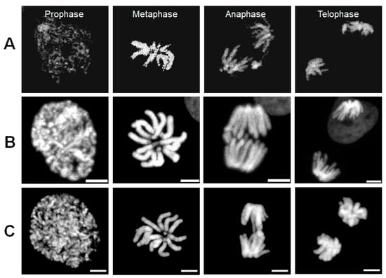 - Robbins, E.; Pederson, T.; Klein, P. Comparison of mitotic phenomena and effects induced by hypertonic solutions in HeLa cells. J. Cell. Biol. 1970, 44, 400–416. [Google Scholar] [CrossRef] [PubMed]