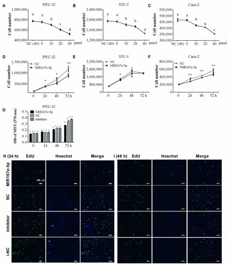 3.1. Synthetic MIR167e-5p Suppresses the Proliferation of Enterocytes