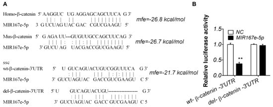 3.2. MIR167e-5p Targets the Transcript of β-Catenin
