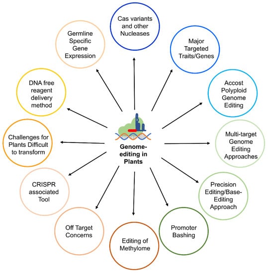 An overview of the different aspects covered in the present review related to the CRISPR/Cas (clustered regularly interspaced short palindromic repeats/CRISPR-associated protein) based genome editing in plants.